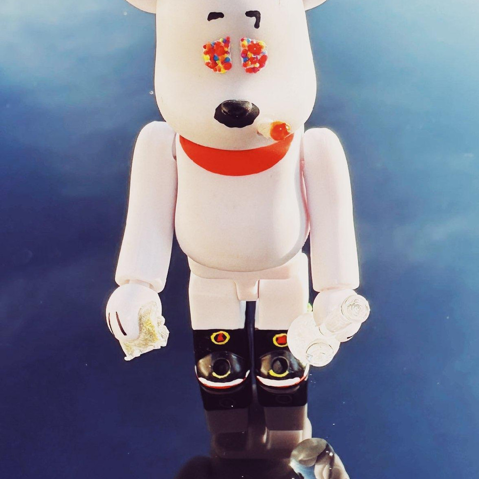 1-Custom-Bearbrick Snoopy - Stoner Edition, Hand Painted Jordan-13-Playoffs, Glow Eyes, Bag of Za(FAKE) ,Glass piece